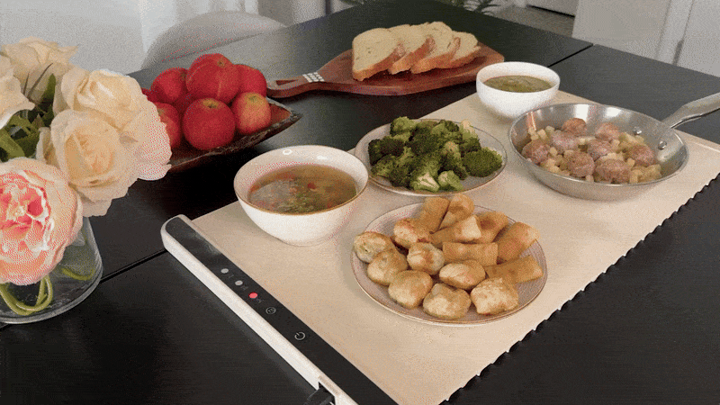 Instant warmth when you need it. TempTray heats up in just 10 seconds, keeping food ready to serve while you finish cooking or wait for everyone to join the table. Perfect for soups, pasta, coffee, and more — no more rushing to eat before it cools.